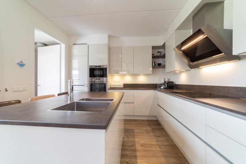 Eingangsbereich mit Garderobe. Großzügiges Wohnzimmer mit Kamin, luxuriöser offener Küche mit separater Spülinsel. Elternschlafzimmer mit eigenem Badezimmer mit ebenerdiger Dusche und WC.