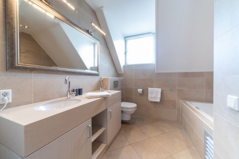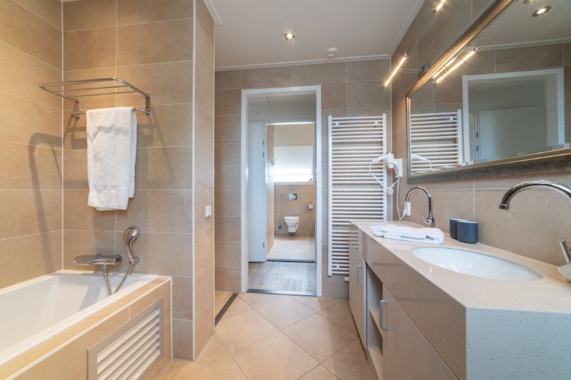 Zwei luxuriöse Badezimmer mit Dusche, davon eines mit Whirlpool.
